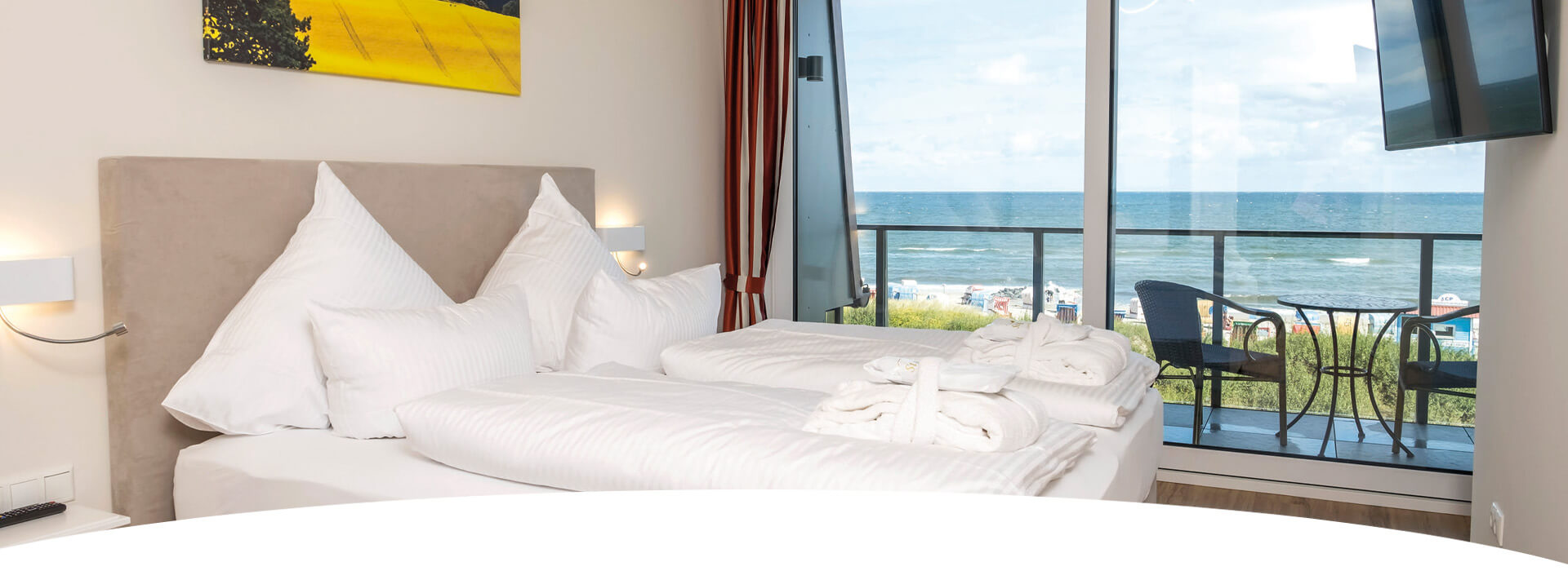 Neben den Hotelzimmern in unserem bekannten und beliebten „Haus am Meer“ wohnen Sie im Aparthotel „Haus am Meer“ in 39 neu erbauten Appartements, alle mit traumhaftem Meerblick. Diese verteilen sich auf vier Häuser in bester Lage an der Strandpromenade.