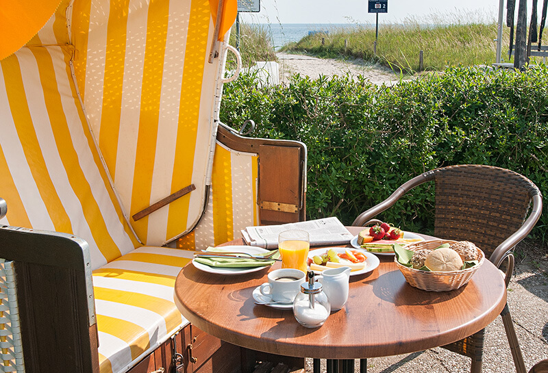 Langsam geht die Sonne über der Ostsee auf, sanft wiegt sich das Dünengras im Wind und leise plätschern die Wellen an den Strand. Mit dieser Kulisse starten Sie Ihren Tag am Meer, während das reichhaltige Genießer-Frühstücksbuffet im Strandcafé den Moment noch perfekter werden lässt. Am Nachmittag können Sie unsere leckeren Kuchen und Torten im Strandkorb auf der Sonnenterrasse, in der lichtdurchfluteten Lobby oder später im Jahr am gemütlichen Kamin probieren. Mit fantastischem Blick auf die Ostsee klingt bei einem genussvollen Dinner der Abend ganz romantisch aus. Für unsere Küche verwenden wir frische, regionale Produkte, zu denen auch das Fleisch der hauseigenen Galloway-Rinder gehören. Unsere Köche sind mit Leidenschaft für Sie da und lassen Ihre Auszeit am Meer zu einem ganz besonderen Genuss-Erlebnis werden.