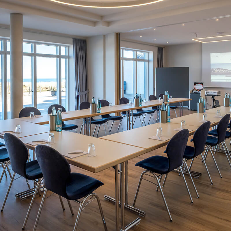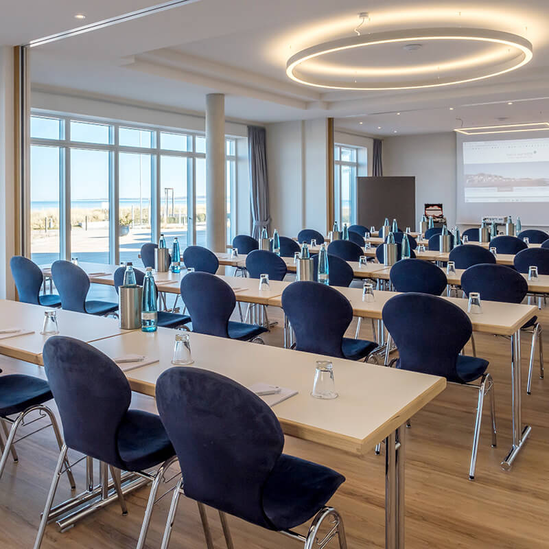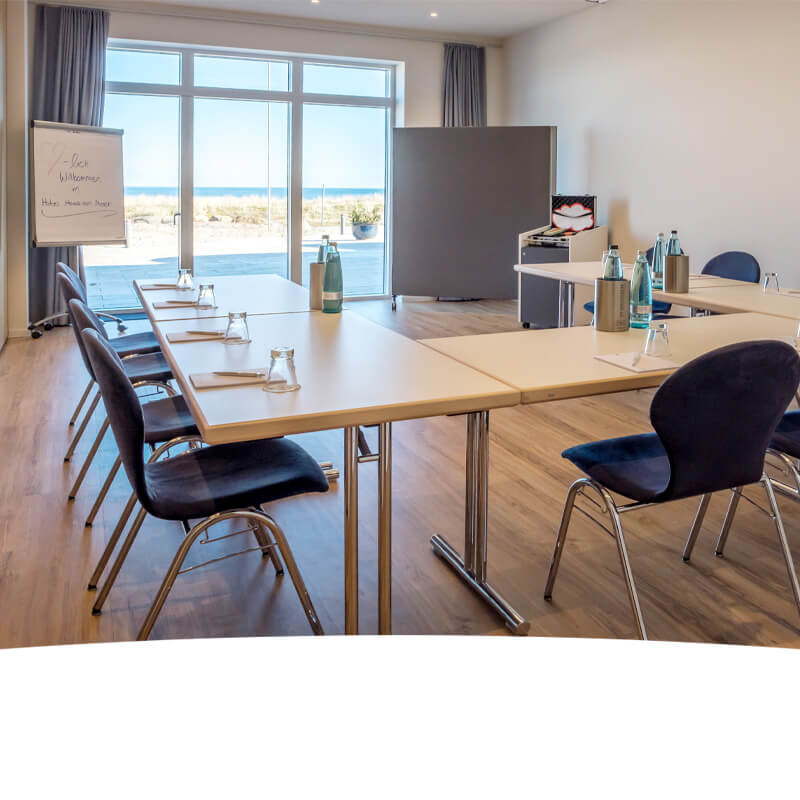 Und dabei haben Sie immer das inspirierende Element des Wassers im Blick. Tagen Sie dort, wo frischer Wind neue Ideen schafft und erleben Sie die anregenden und inspirierenden Kräfte des Meeres. Nirgendwo sonst sind Sie dem Meer so nahe, denn unser Haus steht direkt am breiten Sandstrand von Hohwacht. Wasser, soweit das Auge reicht: aus allen Veranstaltungsräumen, jedem Zimmer und den Restaurants. Ob kleine Besprechungen, Workshops, Schulungen oder große Seminare, Tagungen oder Konferenzen – das Haus am Meer steht Ihrer geplanten Veranstaltung mit modernster Technik und individuell anpassbaren Räumlichkeiten zur Verfügung.