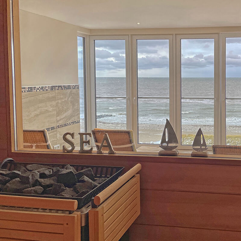 Feiner Ostseestrand, frische Meeresluft und ein weiter Horizont - in Hohwacht liegen gesunde Bewegung, Entschleunigung und tiefe Entspannung direkt vor der Haustür. Lust auf noch mehr Wohlfühlmomente? Dann besuchen Sie unsere Saunalandschaft und erleben Sie Ihren lang ersehnten Ostsee-Wellness-Zauber, bei jedem Wetter und das ganze Jahr über. Auf 180 m2 erwarten Sie eine Finnische Sauna, eine Dampfsauna, ein Sanarium, bequeme Infrarotsessel sowie ein Loungebereich mit spektakulärem Blick auf die Ostsee.